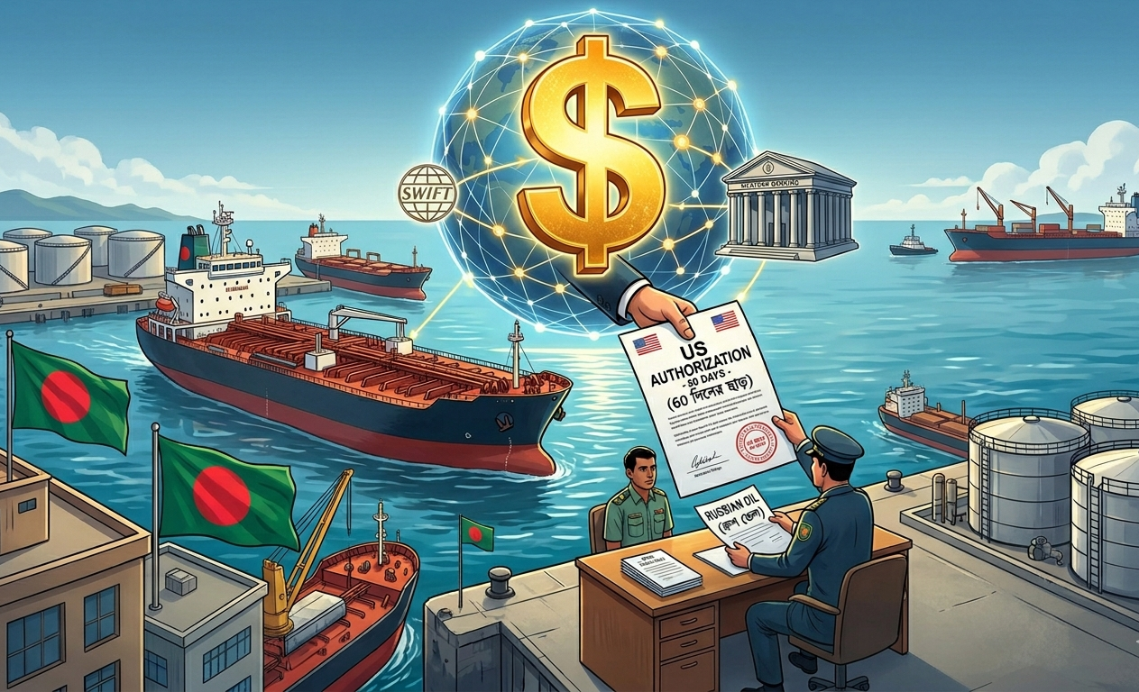আন্তর্জাতিক বাজারে জ্বালানি তেল কেনাবেচার প্রধান মাধ্যম হলো মার্কিন ডলার। বাংলাদেশ যখন রাশিয়া বা অন্য কোনো দেশ থেকে তেল কিনতে যায়, তখন সেই পেমেন্ট বা অর্থ পরিশোধ করতে হয় ডলারে। এই ডলারের লেনদেন নিয়ন্ত্রিত হয় মার্কিন ব্যাংকিং নেটওয়ার্কের মাধ্যমে।
