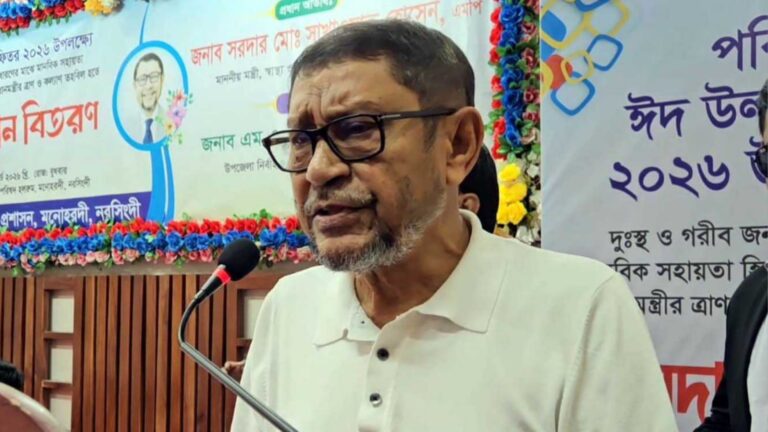 আজ বুধবার (১৮ মার্চ) নরসিংদীর মনোহরদী উপজেলা পরিষদ হলরুমে আয়োজিত এক অনুষ্ঠানে এসব কথা বলেন স্বাস্থ্যমন্ত্রী। পবিত্র ঈদুল ফিতর উপলক্ষে প্রধানমন্ত্রীর ত্রাণ ও কল্যাণ তহবিল থেকে দুস্থ ও অসচ্ছল মানুষের মাঝে অনুদান বিতরণ অনুষ্ঠানে তিনি প্রধান অতিথি হিসেবে উপস্থিত ছিলেন।