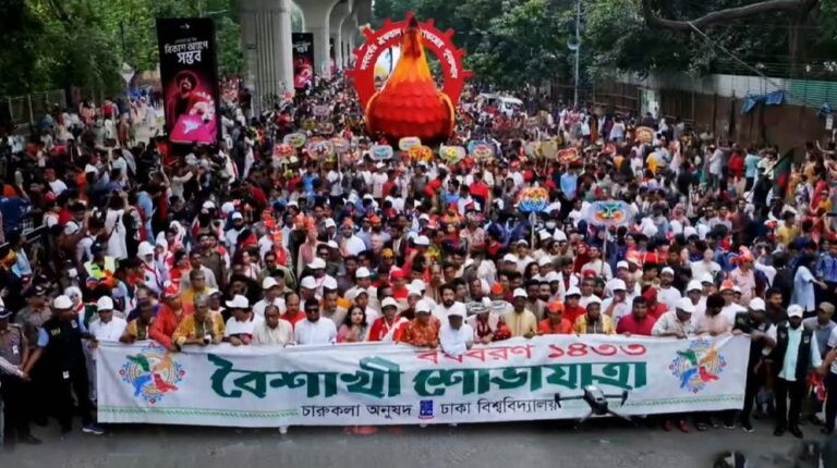 সব মিলিয়ে, এবারের পহেলা বৈশাখে ঢাকা যেন এক বিশাল উৎসবের নগরীতে পরিণত হয়েছে। ব্যস্ত নগরজীবনের মাঝেও মানুষ খুঁজে নিচ্ছে আনন্দ, ঐতিহ্য আর সংস্কৃতির সংযোগ। এই দিনটি কেবল নতুন বছরের সূচনা নয়, বরং বাঙালির শেকড়ের সঙ্গে নতুন করে যুক্ত হওয়ার এক অনন্য সুযোগ।