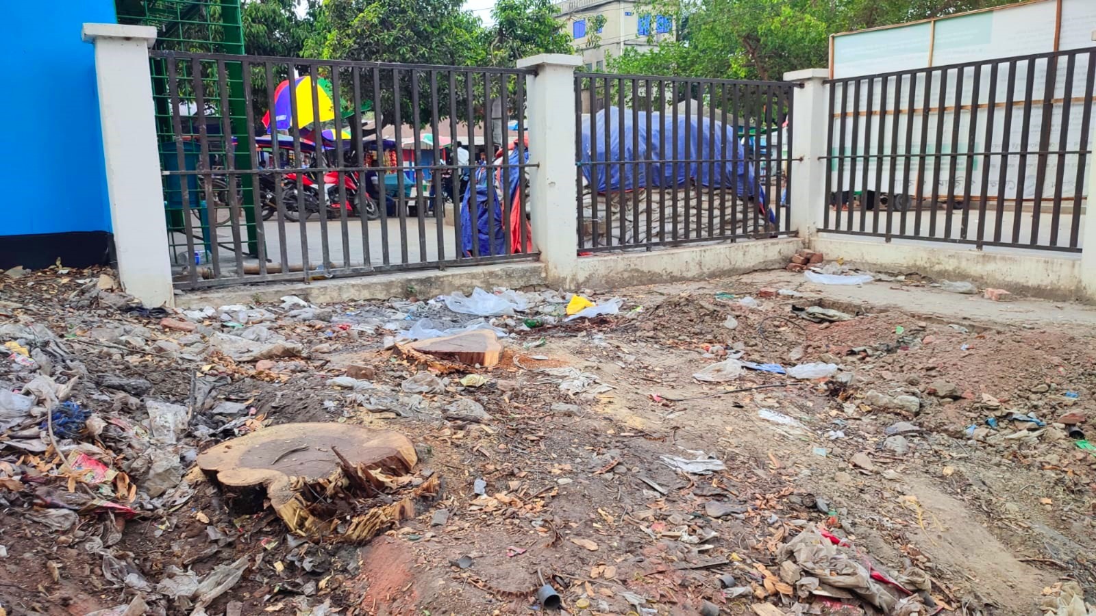 গত মঙ্গলবার (১৪ এপ্রিল) সকালে স্থানীয়রা দেখতে পান পার্কের এক পাশে থাকা দুটি গাছ রাতের আঁধারে কেটে ফেলা হয়েছে। এ নিয়ে সামাজিক যোগাযোগ মাধ্যমে ছবি ও লেখা পোস্ট হওয়ার পর সমালোচনার ঝড় ওঠে। পার্কের মধ্যে ছায়াদানকারী দুটি গাছ কেটে ফেলা নিয়ে ক্ষুব্ধ প্রতিক্রিয়া ব্যক্ত করে পৌর বাসিন্দারা। এর মধ্যে পরদিন সকালে গাছ কেটে ফেলা জায়গায় দোকান ঘর তোলার কাজ শুরু করেন কয়েকজন মিস্ত্রি। এ সময় শিশু পার্কের জায়গায় ঘর তোলা দেখে বাধা দেন স্থানীয়রা।