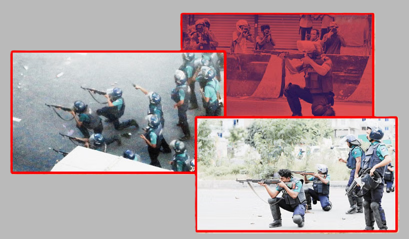 সুপ্রিম কোর্টের আইনজীবী ও গবেষক ড. কাজী জাহেদ ইকবাল পুলিশি তথ্য বিশ্লেষণে পান, পুলিশের গুলির ব্যবহার নিয়ে অন্তত ১০০টি মামলার পর্যালোচনায় ৪,৬৩৪ বার তাজা গুলির প্রমাণ পাওয়া গেছে। পুলিশ ৭.৬২ মিমি সেমি-অটোমেটিক রাইফেল, সাব-মেশিনগান, বিডি০৮ অ্যাসল্ট রাইফেল এবং বিভিন্ন পিস্তল ব্যবহার করেছে।