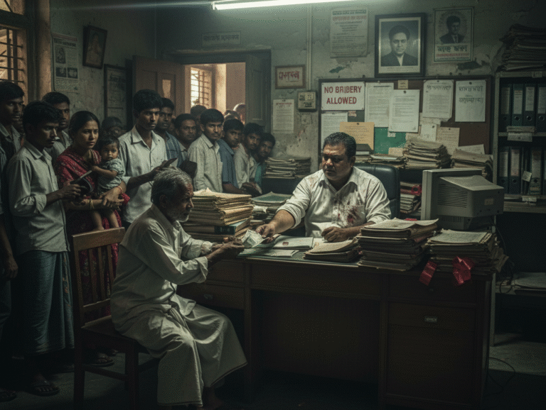 সরকারি অফিসে সেবা নিতে যাওয়া সাধারণ মানুষরা এখনো ভোগান্তিতে পড়ছেন। তারা নানা ধরণের “অতিরিক্ত” অর্থ বা ঘুষ দিতে বাধ্য হচ্ছেন, যা মূল সেবার খরচের বাইরে। এক বছরেরও বেশি সময় পার হয়ে গেলো মধ্যবর্তী সরকার, যার নেতৃত্বে আছেন মুহাম্মদ ইউনুস, দায়িত্ব নেওয়ার পরও সেবা খাতের দুর্নীতি রুখতে কোনো প্রকৃত অগ্রগতি দেখা যায়নি।