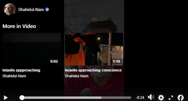 শহিদুল আলম আরো জানান, গতকাল মঙ্গলবার ফেসবুকে তিনি লিখেছিলেন, আজ ভোরে তারা রেড জোন-এ পৌঁছাতে সক্ষম হবেন। রেড জোন বলতে তিনি এমন বিপজ্জনক অঞ্চল বোঝিয়েছেন, যেখানে সম্প্রতি ইসরায়েলি সেনারা সুমুদ ফ্লোটিলা নৌবহরকে আটকে দিয়েছিল। এ নৌবহরের নৌযানগুলোও ইসরায়েলি অবরোধ ভেঙে গাজায় ঢোকার চেষ্টা করেছিল।