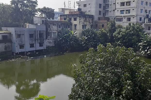 সোমবার সরেজমিন দেখা যায়, পুকুরের পূর্ব-দক্ষিণ থেকে পশ্চিম পাশে শিক্ষক সমিতির কার্যালয়, বিএফসি, বাংলাদেশ রাইফেলস ক্লাব, নিষিদ্ধ ঘোষিত আওয়ামী লীগ কার্যালয়, স্কাউটস ভবন, চেম্বার অব কমার্স, বাংলা পয়েন্ট, ময়ফুল গার্ডেন, একে কমপ্লেক্স, ফরিদা মঞ্জিল, সেলিম শপিং সেন্টার, গোলদার প্লাজা ও আমেনা প্লাসহ একাধিক স্থাপনা গড়ে উঠেছে। এসব ভবনের অধিকাংশই পুকুরের তীর দখল করে নির্মিত। ভূমি অফিসের তথ্য বলছে, এক বছরের ইজারা নিয়ে এসব স্থাপনা গড়া হয়েছে।