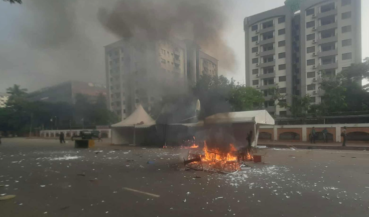 ডিএমপির শেরেবাংলা নগর থানার ভারপ্রাপ্ত কর্মকর্তা ইমাউল হক জানান, চারটি মামলার মধ্যে একটি অভিযোগ সংরক্ষিত এলাকায় জোরপূর্বক প্রবেশের, বাকি তিনটি মামলা হলো পুলিশের ওপর হামলা, গাড়ি ভাঙচুর ও কন্ট্রোল রুমে আগুন দেওয়া। মামলায় আসামি করা হয়েছে সন্ত্রাসী, দুর্বৃত্তকারী, অনিষ্টকারী, নাশকতাকারী ও ফ্যাসিবাদী মতাদর্শের লোকজনকে।
