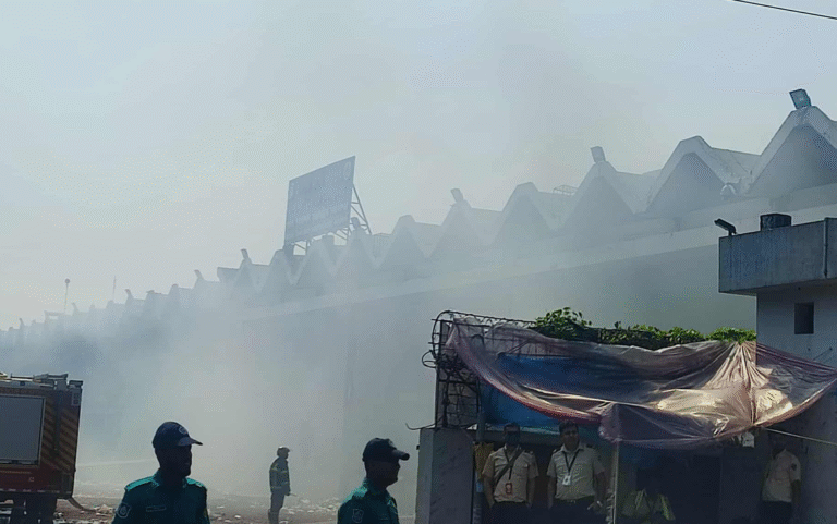 ফায়ার সার্ভিসের নিয়ন্ত্রণ কক্ষের ডিউটি অফিসার লিমা খানম জানান, “আগুন পুরোপুরি নির্বাপিত হয়নি, তাই ধোঁয়া উঠছে। আগুন যেন নতুন করে জ্বলতে না পারে, সেজন্য আমাদের ২২টি ইউনিট এখনও কাজ করছে।”