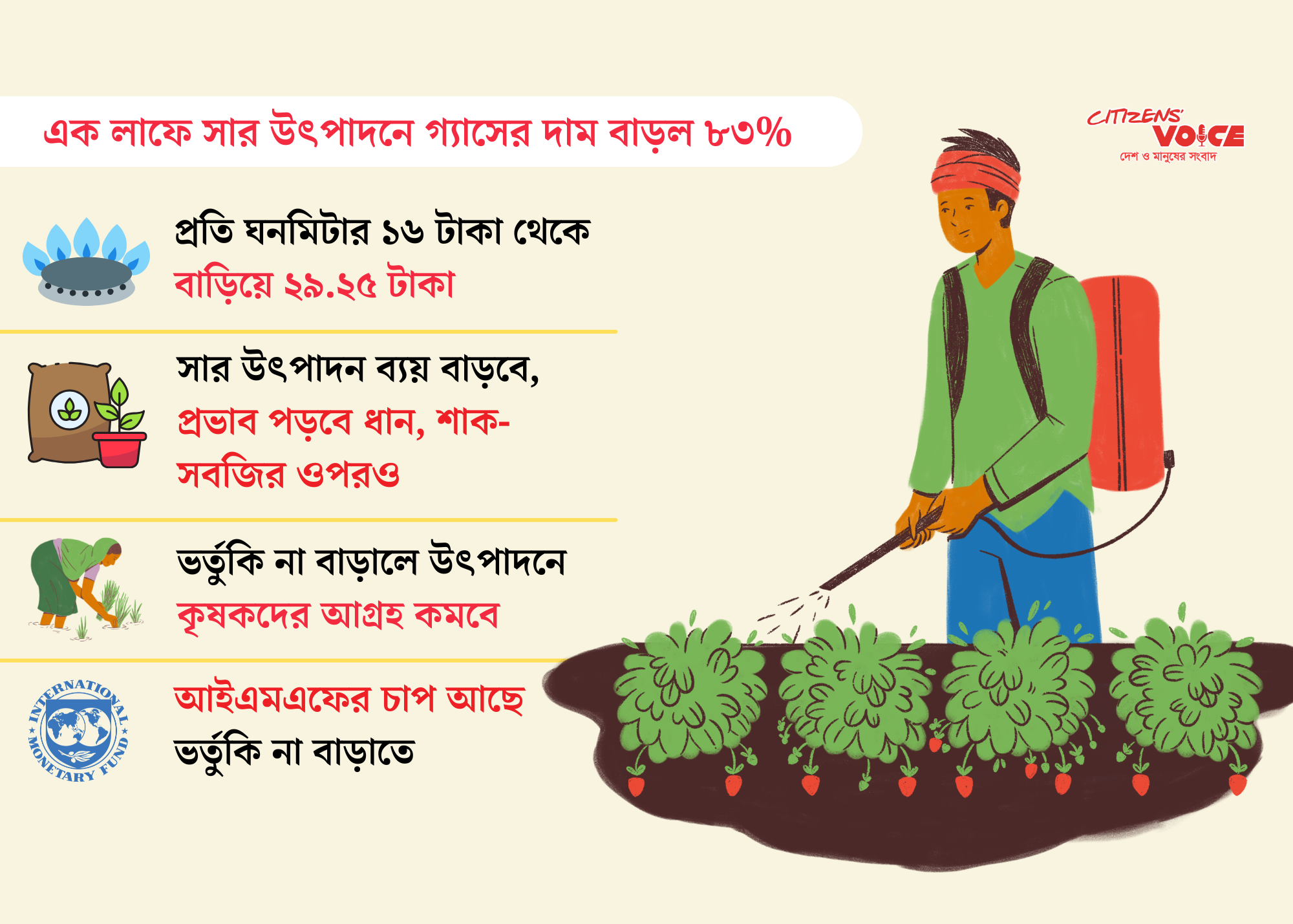 দেশে দীর্ঘদিন ধরেই কৃষক ন্যায্য মূল্য না পাওয়া এবং ভোক্তা সুলভ দামে পণ্য না কেনার সমস্যায় ভুগছে। উৎপাদন থেকে বাজার পর্যন্ত কৃষিপণ্যের যে ব্যবস্থাটি রয়েছে, তার উল্লেখযোগ্য অংশের লাভই চলে যায় মধ্যস্বত্বভোগীর পকেটে। এমন পরিস্থিতিতে উচ্চ মূল্যস্ফীতির চাপ যখন ক্রমেই বাড়ছে, তখন সার উৎপাদনে ব্যবহৃত গ্যাসের দাম ৮৩ শতাংশ বাড়ানোর সিদ্ধান্ত কৃষিতে নতুন ধরনের উদ্বেগ সৃষ্টি করেছে।
