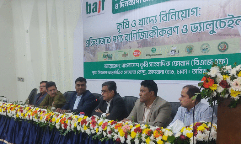 আজ শনিবার (২৯ নভেম্বর) রাজধানীর সিরডাপ মিলনায়তনে বাংলাদেশ কৃষি সাংবাদিক ফোরাম (বিএজেএফ) আয়োজিত চার দিনব্যাপী কৃষি সম্মেলনের অধিবেশনে তিনি এসব কথা বলেন। অধিবেশনের শিরোনাম ছিল ‘কৃষি ও খাদ্যে বিনিয়োগ: মানসম্পন্ন কৃষি উপকরণ ও প্রক্রিয়াজাত পণ্য এবং কৃষির বাণিজ্যিকীকরণে ভ্যালুচেইন গঠন’।