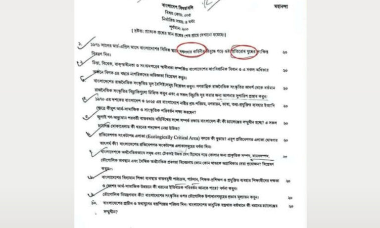 গত ২৭ নভেম্বর শুরু হয়েছে ৪৭তম বিসি পরীক্ষা। (৩ ডিসেম্বর) ‘বাংলাদেশ বিষয়াবলি’ বিষয়ের পরীক্ষা হয়। ‘বাংলাদেশলি’ বিষয়ের ‘ ‘মনি প্রশ্নে বিষয়বস্তু এবং দেখানি সেটের অন্যভাবে জানানো হয়েছে।