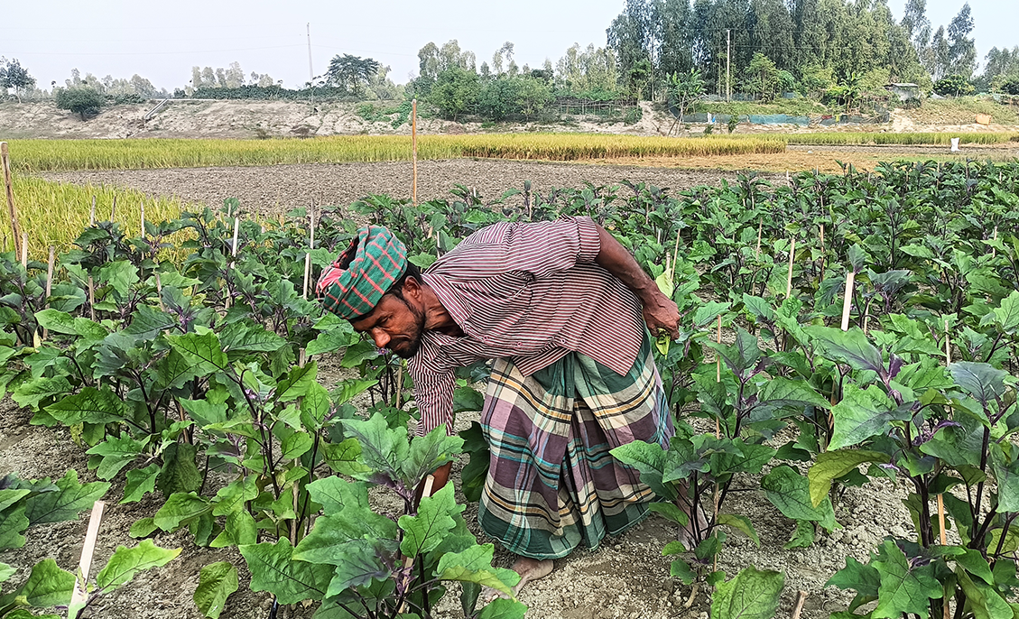 কৃষক মাজেদুল ইসলাম বলেন, তিনি ৩০ শতক জমিতে বেগুন চাষ করেছেন। গত বছর লাভজনক হওয়ায় এবার দ্বিগুণ জমিতে চারা লাগিয়েছেন। তবে এবার পোকা এবং মোজাইক ভাইরাসের আক্রমণে ফলন কমে যাওয়ার শঙ্কা দেখা দিয়েছে। তিনি বলেন, “এখন গাছে ফুল ধরেছে। শীতের প্রকোপ বাড়লে কুয়াশা পড়ার কারণে গাছের বৃদ্ধি কমে যাবে এবং ফলনও কম হবে।” সূত্র: কালবেলা