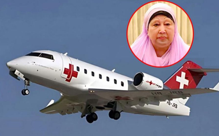 জানা যায়, কাতার সরকারের সহায়তায় জার্মান এফএআই এভিয়েশন গ্রুপের বোমবার্ডিয়ার চ্যালেঞ্জার ৬০৪ মডেলের একটি লং–রেঞ্জ মেডিকেল ইভাকুয়েশন জেট ভাড়া নেওয়া হয়েছিল, যা রোগী পরিবহনে দীর্ঘ দূরত্ব অতিক্রমে সক্ষম এবং ঢাকা–লন্ডন মেডিকেল ট্রান্সফারের জন্য বিশেষভাবে উপযোগী।