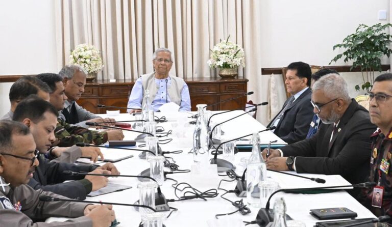 দেশের সার্বিক আইনশৃঙ্খলা পরিস্থিতি পর্যালোচনা ও আসন্ন জাতীয় নির্বাচনের প্রেক্ষাপটে নিরাপত্তা ব্যবস্থা জোরদার করতে প্রধান উপদেষ্টা অধ্যাপক মুহাম্মদ ইউনূসের নেতৃত্বে একটি গুরুত্বপূর্ণ বৈঠক অনুষ্ঠিত হয়েছে। বৈঠকে তিনি যেকোনো মূল্যে আইনশৃঙ্খলা পরিস্থিতি স্বাভাবিক রাখার নির্দেশনা দেন।