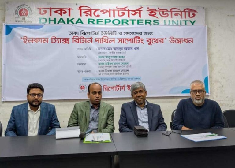 গতকাল রোববার (২১ ডিসেম্বর) বিকেলে রাজধানীর সেগুনবাগিচায় ঢাকা রিপোর্টার্স ইউনিটির (ডিআরইউ) শফিকুল কবির মিলনায়তনে এক অনুষ্ঠানে তিনি এসব তথ্য জানান। এসময় তিনি ডিআরইউ সদস্যদের জন্য আয়কর রিটার্ন দাখিল সাপোর্টিং বুথের উদ্বোধন করেন। অনুষ্ঠানে ডিআরইউ সভাপতি সালেহ আকন ও সাধারণ সম্পাদক মাইনুল হাসান উপস্থিত ছিলেন।