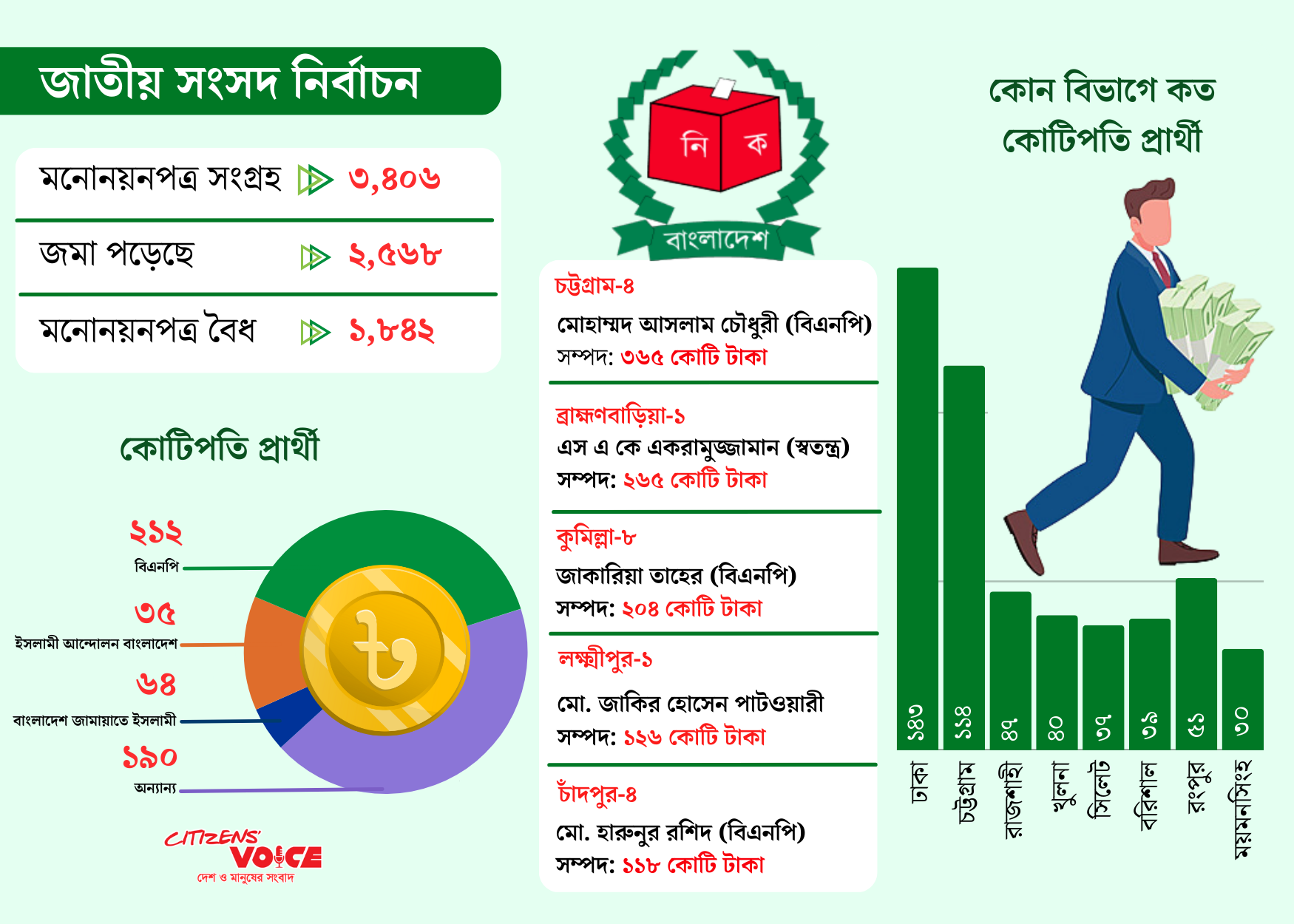 এই তালিকায় আরও চমকপ্রদ তথ্য হলো—৭ জন প্রার্থীর সম্পদের পরিমাণ শতকোটি টাকারও বেশি।