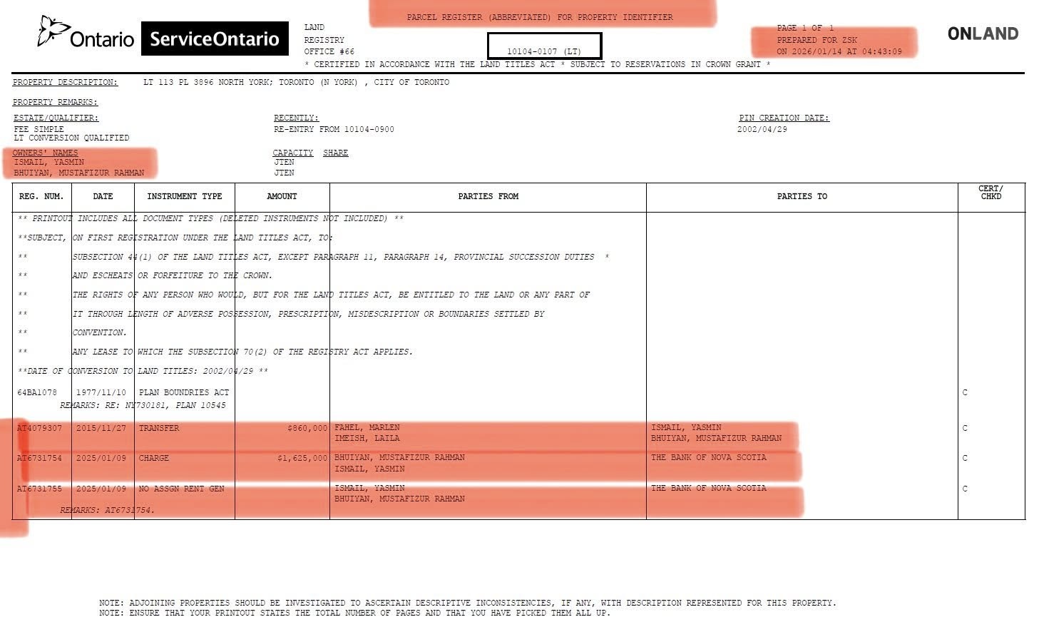 তাঁকে জানানো হয় যে ওন্টারিও ল্যান্ড রেজিস্ট্রি থেকে সংগৃহীত নথিতে তিনি এবং তাঁর স্ত্রী যৌথভাবে বাড়িটির মালিক হিসেবে উল্লেখ রয়েছেন। পাশাপাশি তাঁদের নামে প্রদত্ত সম্পত্তি করের কপিও রয়েছে। এসব তথ্য স্মরণ করিয়ে দেওয়ার পরও তিনি বিষয়টি স্বীকার করেননি।