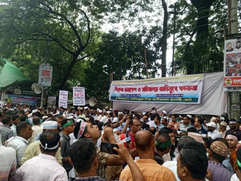‘এমপিওভুক্ত শিক্ষা জাতীয়করণ প্রত্যাশী জোট’ ৯ম জাতীয় বেতন কাঠামো (পে-স্কেল) প্রজ্ঞাপন জারি এবং জ্বালানি উপদেষ্টার সাম্প্রতিক বক্তব্য প্রত্যাহারের দাবিতে দেশের শিক্ষাপ্রতিষ্ঠানগুলোতে বিক্ষোভ কর্মসূচি ঘোষণা করেছে।
