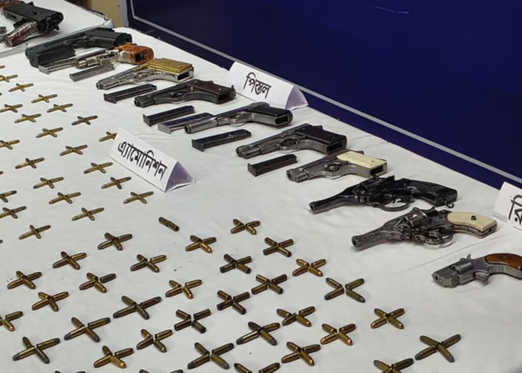 ২০২৪ সালের জুলাইয়ে গণ-অভ্যুত্থানের সময় থানাসহ পুলিশের বিভিন্ন স্থাপনা ও কারাগার থেকে ৫ হাজার ৮৪৭টি আগ্নেয়াস্ত্র লুট হয়। এর মধ্যে এখনও ১ হাজার ৩৬২টি অস্ত্র উদ্ধার হয়নি। তবে ২০২৪ সালের আগস্ট থেকে ২০২৫ সালের ডিসেম্বর পর্যন্ত অবৈধ অস্ত্র উদ্ধারের ঘটনায় দেশের বিভিন্ন থানায় ২ হাজার ৩৯৩টি মামলা দায়ের করা হয়েছে।