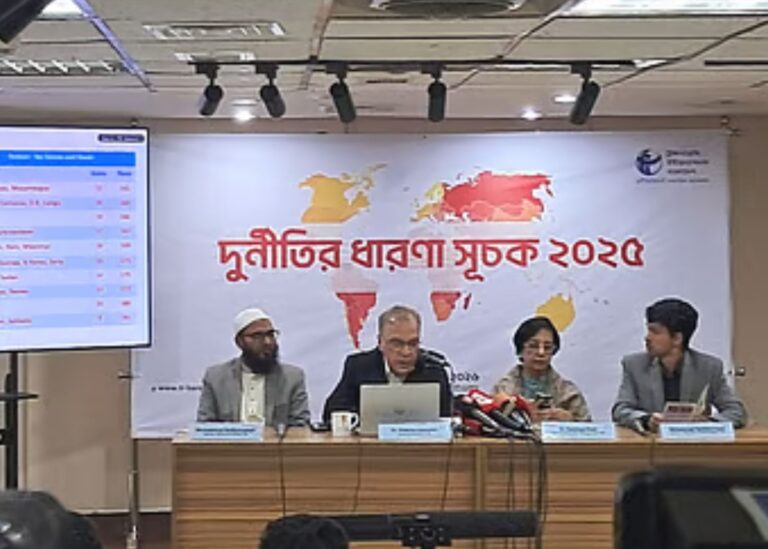 ট্রান্সপারেন্সি ইন্টারন্যাশনাল বাংলাদেশ (টিআইবি) প্রকাশ করেছে ‘দুর্নীতির ধারণা সূচক (সিপিআই) ২০২৫’। ১৮২টি দেশের মধ্যে বাংলাদেশের স্কোর ২৪, যা বৈশ্বিক গড় ৪২-এর অনেক নিচে। এই স্কোরে বাংলাদেশ বিশ্বের সবচেয়ে দুর্নীতিগ্রস্ত দেশের তালিকায় ১৩তম অবস্থান দখল করেছে।