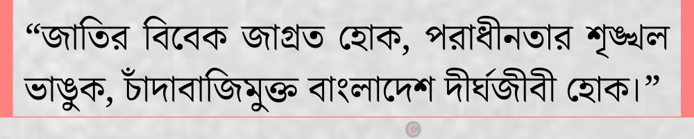 আজকের এই প্রতিবেদন কেবল তথ্য নয়, এটি একটি সতর্কবার্তা। যদি এখনই এই ‘সমঝোতা’র বিষদাঁত ভেঙে দেওয়া না হয়, তবে এই মহীরুহ পুরো বাংলাদেশকে গ্রাস করবে। চাঁদাবাজিমুক্ত বাংলাদেশ কেবল একটি চাওয়া নয়, এটি আমাদের জাতীয় অস্তিত্ব রক্ষার প্রশ্ন। রাষ্ট্রের প্রতিটি অঙ্গকে এখন এই লুণ্ঠনের বিরুদ্ধে যুদ্ধে নামতে হবে।