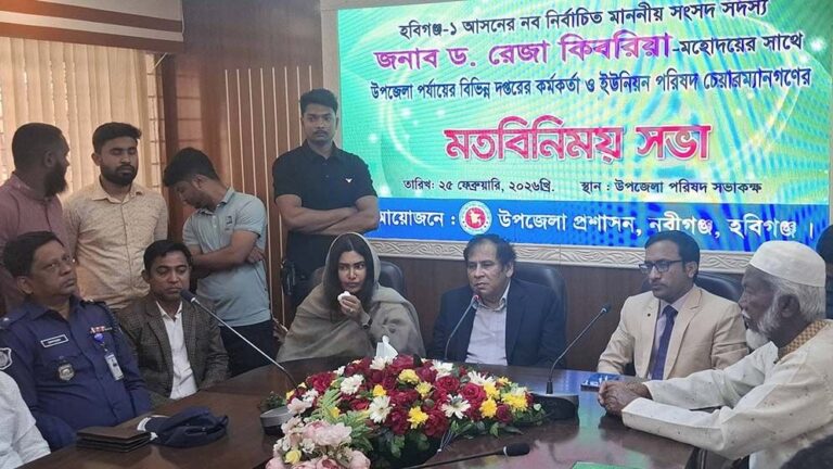 হবিগঞ্জ-১ (নবীগঞ্জ-বাহুবল) আসনের সংসদ সদস্য ড. রেজা কিবরিয়া বলেছেন, বাংলাদেশের সব নাগরিককে সমান দৃষ্টিতে সেবা দিতে হবে। কোনো অন্যায়কারীর কাছে মাথা নত করবেন না। অন্যায়কারী যেই হোক তাকে প্রশ্রয় দেওয়া হবে না।