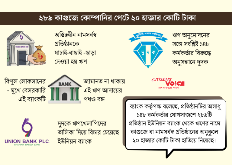 ইউনিয়ন ব্যাংকে কাগুজে কোম্পানির মাধ্যমে ২০ হাজার কোটি টাকা লোপাট