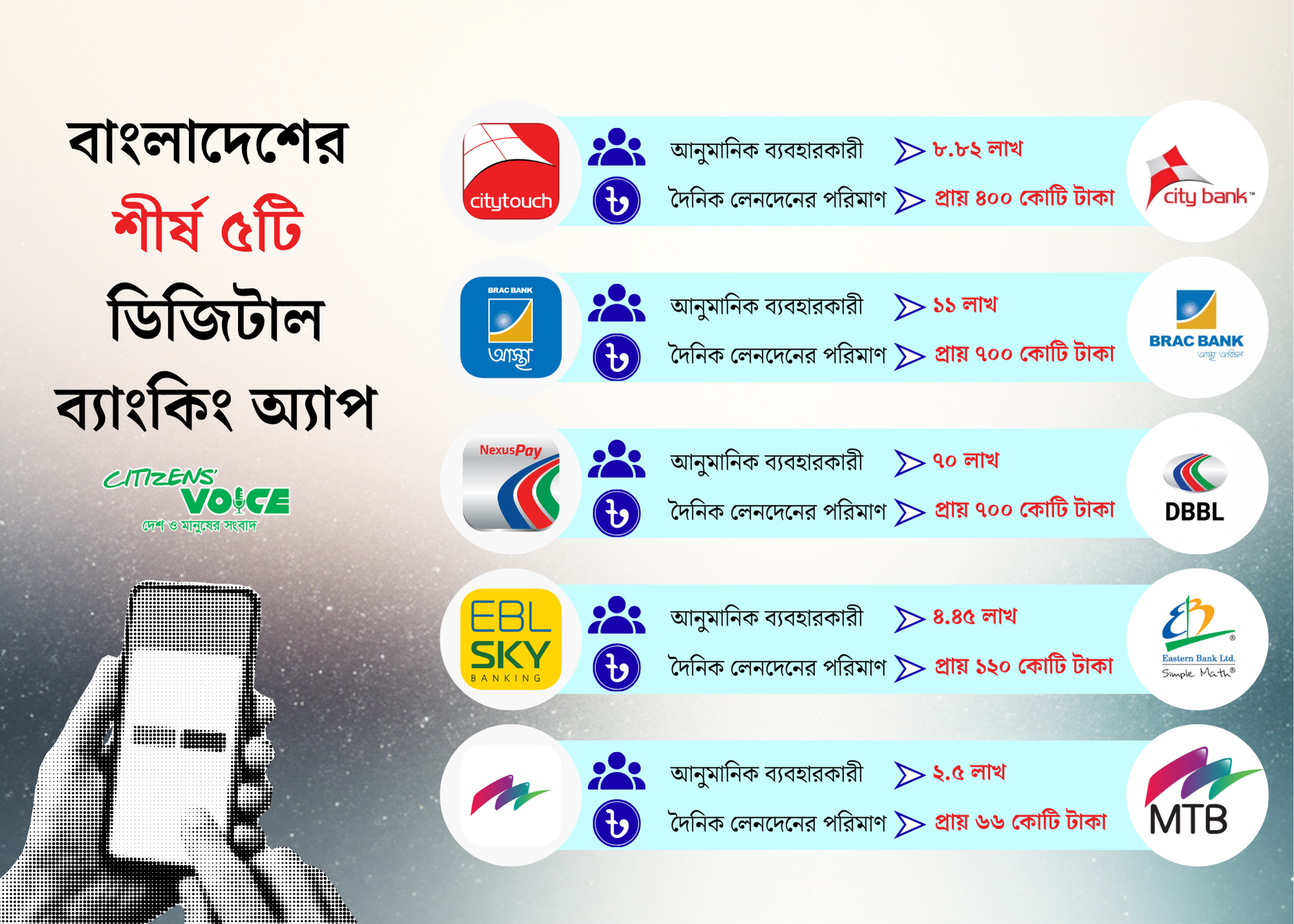 দেশের বেশ কয়েকটি ব্যাংক ইতিমধ্যেই নিজেদের অ্যাপকে পরিণত করেছে আর্থিক লেনদেনের পূর্ণাঙ্গ ডিজিটাল হাবে। নিচে এক নজরে দেখা যাক বাংলাদেশের শীর্ষ পাঁচটি ডিজিটাল ব্যাংকিং অ্যাপের সাফল্যের গল্প।