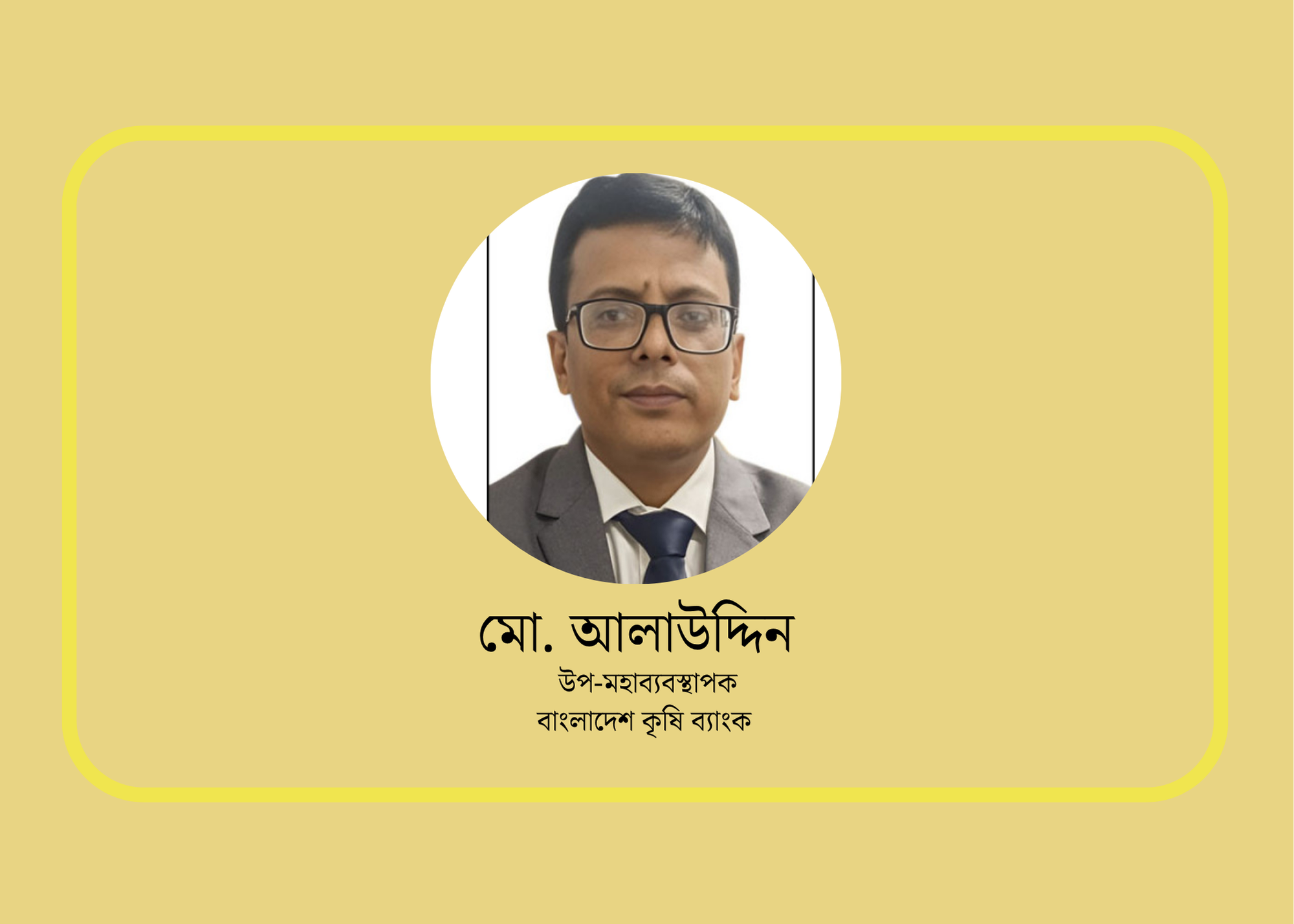 বাংলাদেশ কৃষি ব্যাংকের সহকারী মহাব্যবস্থাপক (এজিএম) মো. আলাউদ্দিনকে পদোন্নতি দিয়ে উপ-মহাব্যবস্থাপক (ডিজিএম) পদে উন্নীত করা হয়েছে। তার এই পদোন্নতি ২০২৫ সালের ২ নভেম্বর থেকে কার্যকর হয়েছে।