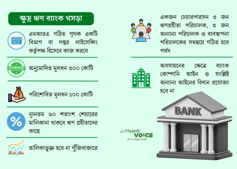 প্রস্তাবিত অধ্যাদেশে ক্ষুদ্র ঋণ ব্যাংকের অনুমোদিত মূলধন ৩০০ কোটি ও পরিশোধিত মূলধন ১০০ কোটি টাকা নির্ধারণ করা হয়েছে। ব্যাংকের ৬০ শতাংশ শেয়ার ঋণগ্রহীতাদের কাছে থাকবে। ব্যাংকের পর্ষদে একজন চেয়ারম্যান, তিনজন ঋণগ্রহীতা পরিচালক, তিনজন অন্যান্য পরিচালক ও ব্যবস্থাপনা পরিচালক থাকবেন। ব্যাংক কখনো পুঁজিবাজারে তালিকাভুক্ত হবে না এবং অবসায়নের ক্ষেত্রে ব্যাংক কোম্পানি আইন প্রযোজ্য হবে না। লাইসেন্সিং কর্তৃপক্ষ ছাড়া ব্যাংকের অবসায়ন সম্ভব হবে না।