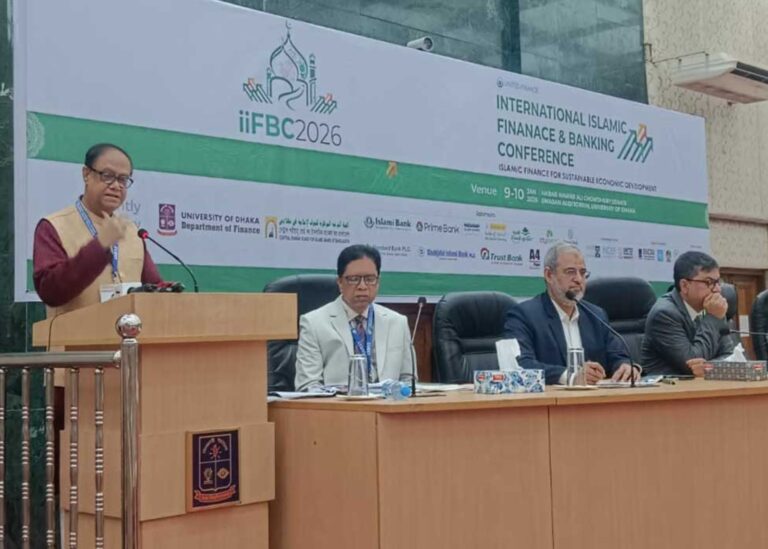 গতকাল শনিবার (১০ জানুয়ারি) ঢাকা বিশ্ববিদ্যালয়ের নবাব নওয়াব আলী চৌধুরী সিনেট ভবনে ‘আন্তর্জাতিক ইসলামী অর্থায়ন ও ব্যাংকিং সম্মেলন’-এর দ্বিতীয় দিনে প্রধান অতিথির বক্তব্যে এসব কথা বলেন তিনি। দুই দিনব্যাপী এই সম্মেলনের আয়োজন করে সেন্ট্রাল শরীয়াহ বোর্ড ফর ইসলামিক ব্যাংকস অব বাংলাদেশ এবং ঢাকা বিশ্ববিদ্যালয়ের ফাইন্যান্স বিভাগ।