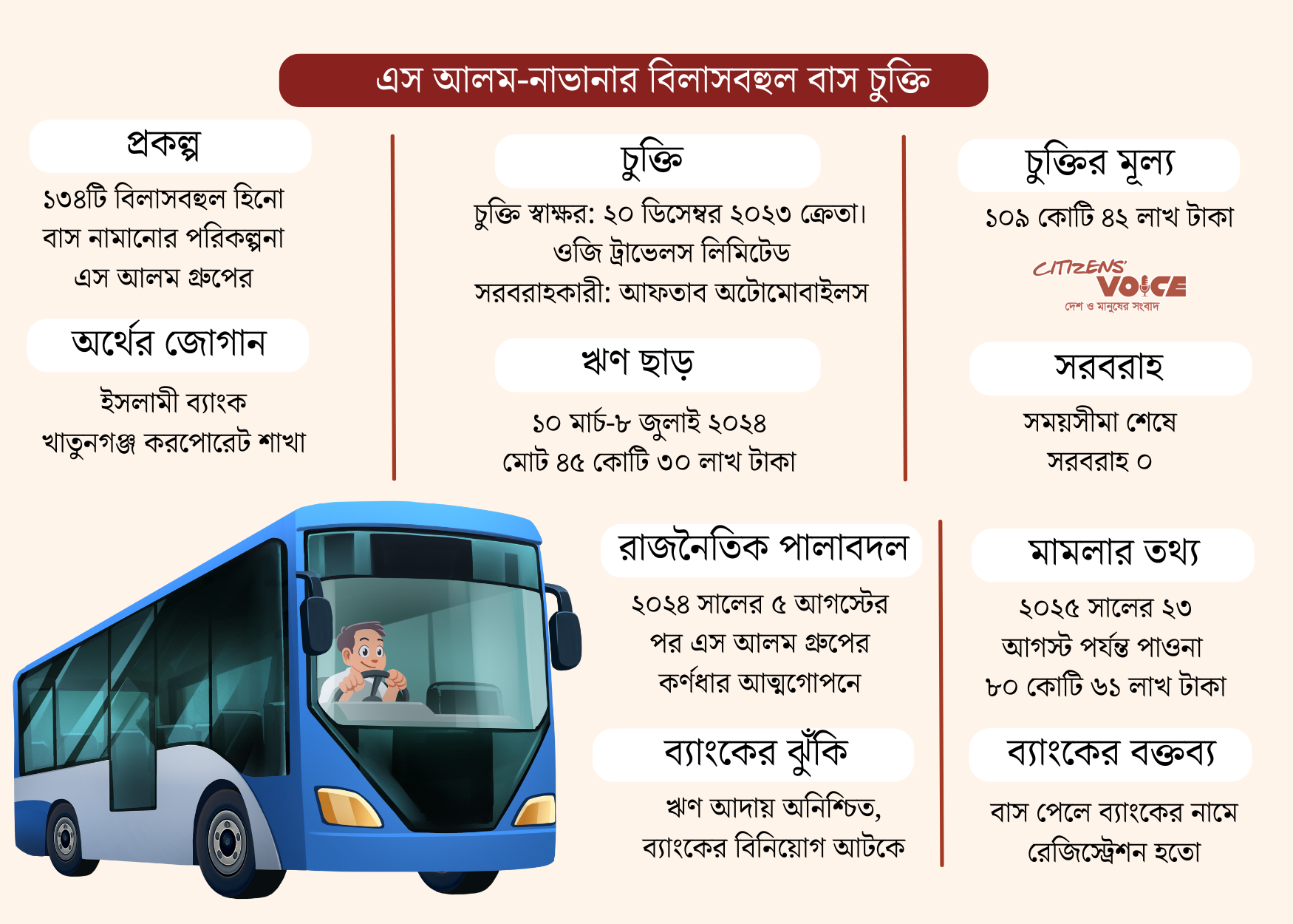 দেশের বিভিন্ন রুটে দূরপাল্লার যাত্রী পরিবহন ছিল আলোচিত ও বিতর্কিত এস আলম গ্রুপের অন্যতম বড় ব্যবসা। পুরোনো সেই তথ্যের সঙ্গে যুক্ত হয়েছে নতুন একটি আর্থিক জটিলতা।