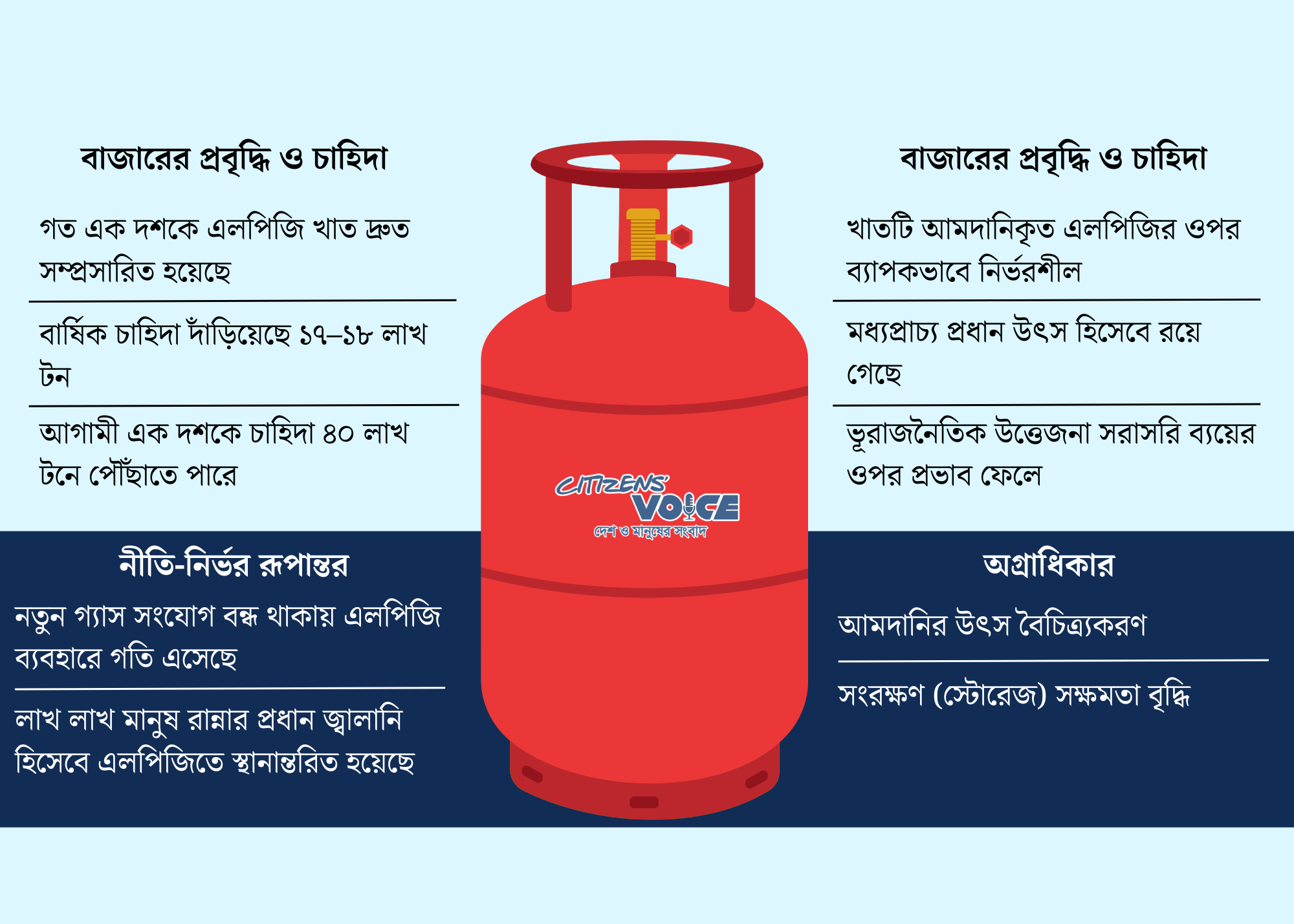 গত এক দশকে পাইপলাইনে নতুন গ্যাস সংযোগ বন্ধ করার সরকারি সিদ্ধান্তের পর এলপিজির ব্যবহার দ্রুত বেড়েছে। তবে দেশীয় উৎপাদন প্রায় না থাকায় এই খাত পুরোপুরি আমদানিনির্ভর হয়ে পড়েছে। ফলে আন্তর্জাতিক বাজারের পরিবর্তন সরাসরি দেশের বাজারে প্রভাব ফেলছে।