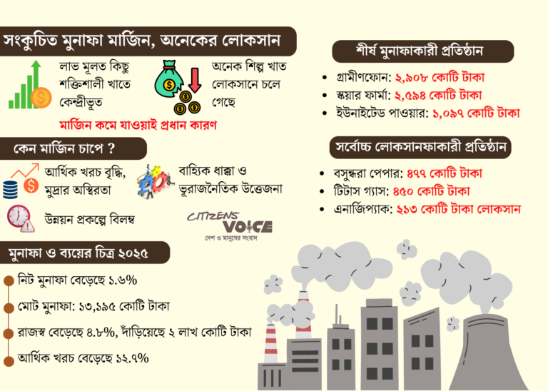 দেশের তালিকাভুক্ত উৎপাদন খাত ২০২৫ সালে সামান্য মুনাফা বাড়ালেও অধিকাংশ শিল্পে লাভ কমেছে বা লোকসান বেড়েছে। উচ্চ সুদহার, দুর্বল চাহিদা এবং বৈশ্বিক অস্থিরতার কারণে ব্যবসায়িক পরিবেশ কঠিন হয়ে ওঠায় এই পরিস্থিতি তৈরি হয়েছে।