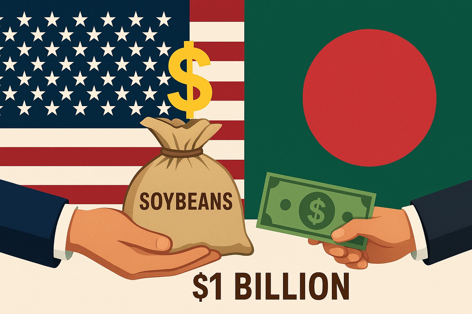বাংলাদেশের তিনটি শীর্ষ শিল্প প্রতিষ্ঠান—মেঘনা গ্রুপ অব ইন্ডাস্ট্রিজ, সিটি গ্রুপ ও ডেল্টা অ্যাগ্রোফুড ইন্ডাস্ট্রিজ—যুক্তরাষ্ট্র থেকে এক বছরে ১০০ কোটি ডলারের সয়াবিন আমদানি করার জন্য ‘লেটার অব ইন্টেন্ট (এলওআই)’ সই করেছে। এর মধ্যে মেঘনা গ্রুপ একাই আমদানি করবে ১০ লাখ টন সয়াবিন বীজ, যা মোট আমদানির প্রায় অর্ধেক।