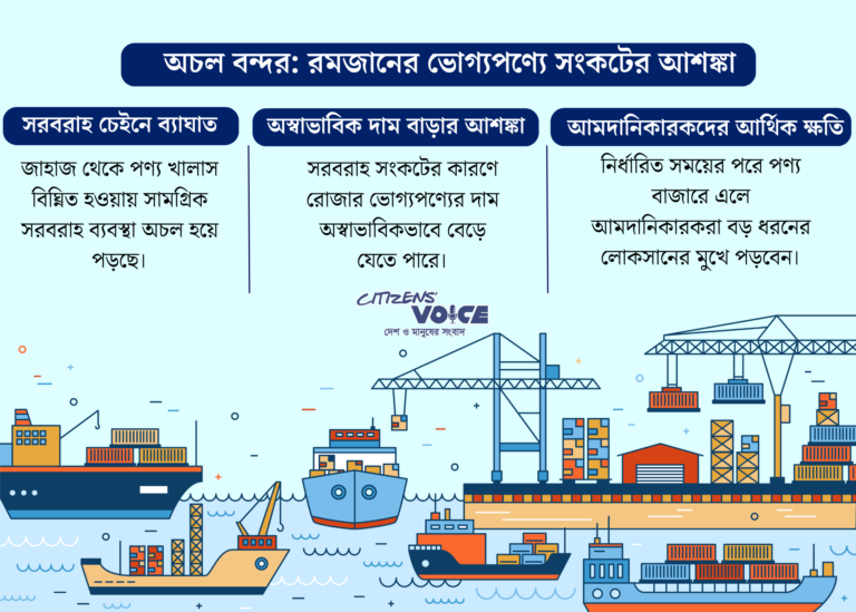 রমজানকে সামনে রেখে বন্দরের ধর্মঘট এবং নির্বাচনকালীন ছুটি মিলিয়ে কার্যদিবস কম হওয়ায় সরবরাহ শৃঙ্খল চাপের মুখে পড়বে। ছোলা, ডাল, তেল, চিনি, খেজুরসহ রোজার প্রয়োজনীয় পণ্যের দাম দ্রুত বাড়তে পারে। সরবরাহ বিঘ্নিত হলে তার প্রভাব সরাসরি সাধারণ ভোক্তাদের ওপর পড়বে, বিশেষ করে কম আয়ের মানুষদের রোজায় নতুন ভোগান্তিতে পড়তে হবে।