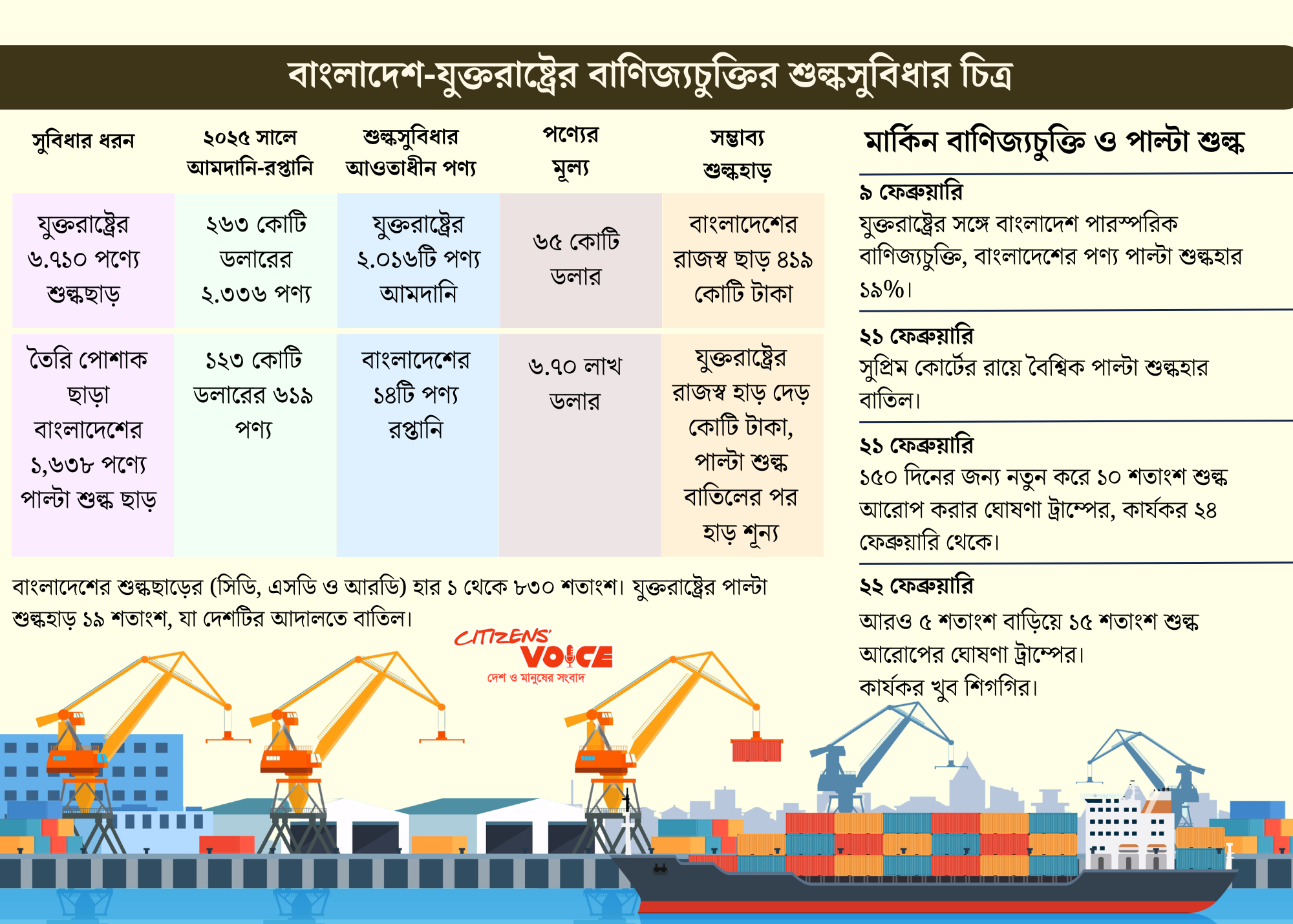 চুক্তি স্বাক্ষরের পর গত ১০ ফেব্রুয়ারি এক সংবাদ সম্মেলনে অন্তর্বর্তী সরকারের সাবেক বাণিজ্য উপদেষ্টা বলেছিলেন, দুটি বড় অর্জন হয়েছে। পাল্টা শুল্ক হার ২০ শতাংশ থেকে কমে ১৯ শতাংশ হয়েছে এবং যুক্তরাষ্ট্রের তুলা ব্যবহার করে তৈরি পোশাক রপ্তানিতে শুল্ক শূন্য হবে। কিন্তু আদালতের রায়ের পর এই সুবিধা দুটোই এখন অনিশ্চিত।