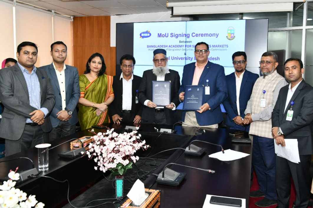 আজ রবিবার (৩০ নভেম্বর) জাতীয় বিশ্ববিদ্যালয় ও বাংলাদেশ একাডেমি ফর সিকিউরিটিজ মার্কেটস (বিএএসএম) শিক্ষার্থীদের পুঁজিবাজার বিষয়ক প্রশিক্ষণ দিতে সমঝোতা স্মারক (এমওইউ) স্বাক্ষর করেছে।