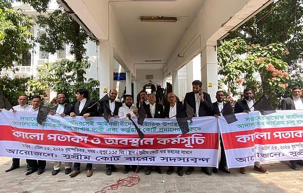 বৈশ্বিক জ্বালানি পরিস্থিতির কারণে সুপ্রিম কোর্টে আংশিক ভার্চ্যুয়াল বিচারিক কার্যক্রম চালু থাকায় অসন্তোষ প্রকাশ করেছেন আইনজীবীদের একটি অংশ। তারা সপ্তাহের প্রতিটি কার্যদিবসে সশরীর আদালত পরিচালনার দাবি জানিয়ে আন্দোলন কর্মসূচি ঘোষণা করেছেন। দাবি বাস্তবায়ন না হলে আগামী ২৮ এপ্রিল কালো পতাকা নিয়ে অবস্থান কর্মসূচি পালনের ঘোষণা দিয়েছেন তারা।