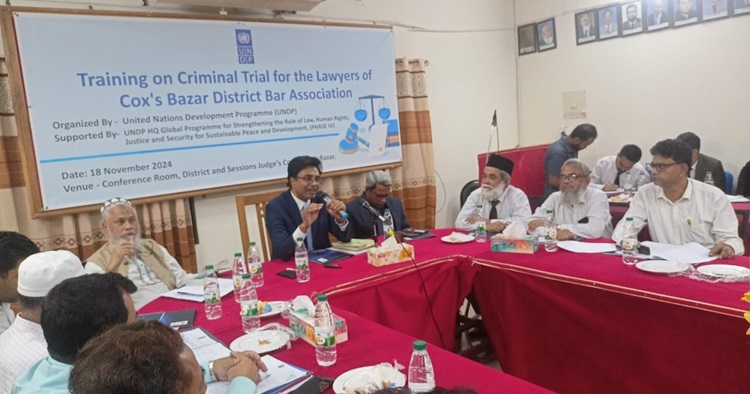 আইন পেশার ধারাবাহিক উন্নয়ন ও বিচারপ্রার্থীদের যথাযথ সেবা নিশ্চিত করার লক্ষ্যে আইনজীবীদের নিয়মিত প্রশিক্ষণ গ্রহণের গুরুত্ব অপরিসীম। ক্রমাগত পরিবর্তনশীল আইন ও বিচারব্যবস্থার সাথে তাল মিলিয়ে চলতে হলে আইনজীবীদের সর্বদা নিজেদের জ্ঞানকে সমৃদ্ধ করতে হয়। এই উদ্দেশ্যকে সামনে রেখে জাতিসংঘের উন্নয়ন বিষয়ক সংস্থা ইউএনডিপি’র উদ্যোগে কক্সবাজার জেলা জজ আদালতের সম্মেলন কক্ষে আয়োজিত হয়েছে “Training on Criminal Trial for the Lawyers of Cox’s Bazar District Bar Association” শীর্ষক একটি প্রশিক্ষণ কর্মশালা। সোমবার এ কর্মশালার উদ্বোধনী অনুষ্ঠানে প্রধান অতিথি হিসেবে উপস্থিত ছিলেন কক্সবাজারের জেলা ও দায়রা জজ মুনসী আব্দুল মজিদ।