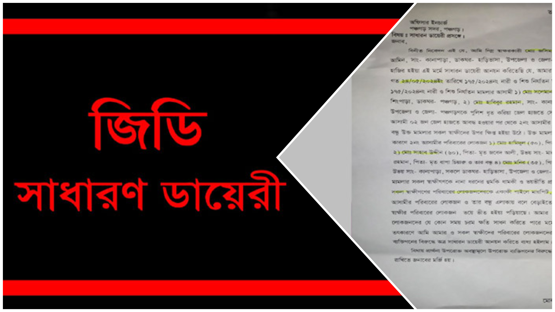 সাধারণ ডায়েরি বা জিডি (GD) হলো থানায় বা বিজ্ঞ আদালতে করা একটি লিখিত অভিযোগ। এটি ভবিষ্যতে নিরাপত্তা ও আইনি পদক্ষেপের জন্য গুরুত্বপূর্ণ প্রমাণ হিসেবে বিবেচিত হয়।