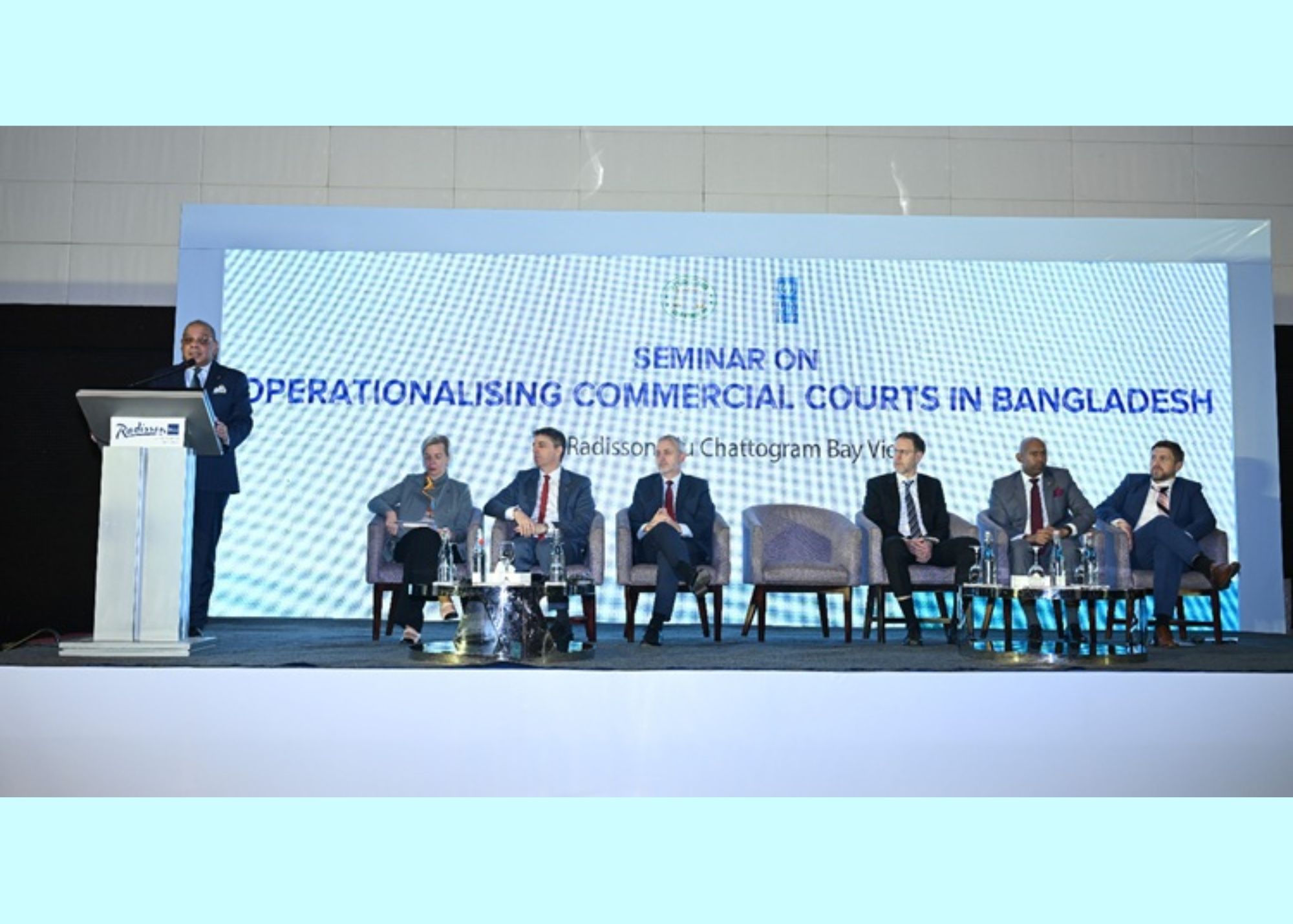চট্টগ্রামের রেডিসন ব্লু হোটেলের কনফারেন্স হলে গতকাল শনিবার সকাল ১০টায় অনুষ্ঠিত হলো বাংলাদেশ সুপ্রিম কোর্ট ও জাতিসংঘ উন্নয়ন কর্মসূচি আয়োজিত “Operationalizing Commercial Court” সেমিনার। অনুষ্ঠানে প্রধান অতিথি ছিলেন বাংলাদেশের প্রধান বিচারপতি ড. সৈয়দ রেফাত আহমেদ।