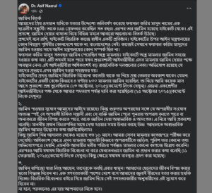 পোস্টে তিনি জানান, প্রিয় ওসমান হাদিকে হত্যার উদ্দেশ্যে গুলিবর্ষণের ঘটনায় ফয়সাল করিম মাসুদ নামের এক ছাত্রলীগ সন্ত্রাসীকে গত বছর র্যাব গ্রেপ্তার করেছিল। পরে তিনি হাইকোর্ট থেকে জামিন পান। এরপর থেকেই এই জামিনের যৌক্তিকতা নিয়ে বিভিন্ন মহলে নতুন করে আলোচনা ও বিতর্ক শুরু হয়।