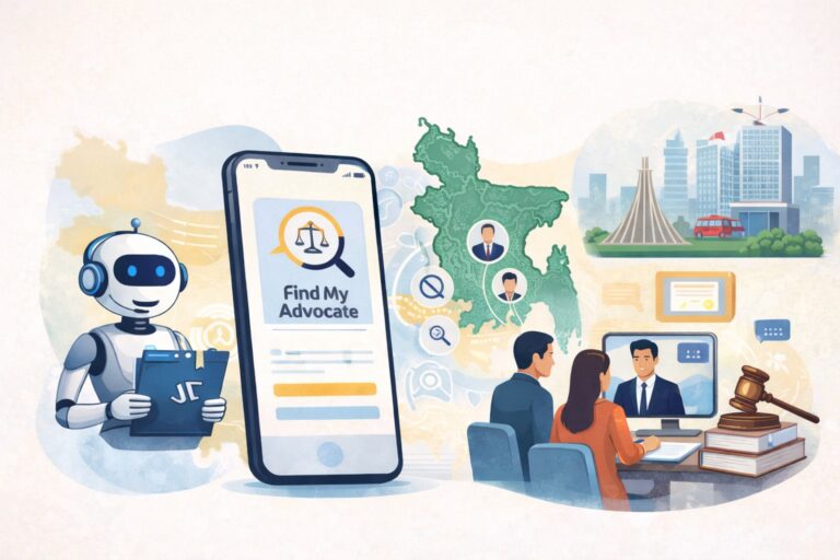 বাংলাদেশে আইনি পরামর্শ পাওয়ার প্রক্রিয়াকে সহজ ও দ্রুত করতে কৃত্রিম বুদ্ধিমত্তা (এআই) প্রযুক্তিনির্ভর নতুন ডিজিটাল আইনি প্ল্যাটফর্ম ‘www.findmyadvocatebd.com’ যাত্রা শুরু করেছে। এই প্ল্যাটফর্মের মাধ্যমে ঘরে বসেই দেশের যেকোনো প্রান্তে থাকা অভিজ্ঞ আইনজীবীদের সঙ্গে সহজে যোগাযোগ করা যাবে। ফলে সাধারণ মানুষ দ্রুত ও সহজভাবে প্রয়োজনীয় আইনি সহায়তা পাওয়ার সুযোগ পাবেন।ডিজিটাল এই প্ল্যাটফর্মটি মূলত বিচারপ্রার্থী ও আইনজীবীদের মধ্যে একটি আধুনিক প্রযুক্তিনির্ভর সেতুবন্ধন হিসেবে কাজ করবে। এর মাধ্যমে সাধারণ মানুষ তাঁদের আইনি সমস্যার ধরন অনুযায়ী দ্রুত সঠিক আইনজীবী খুঁজে পেতে পারবেন এবং প্রাথমিক আইনি পরামর্শও নিতে পারবেন।