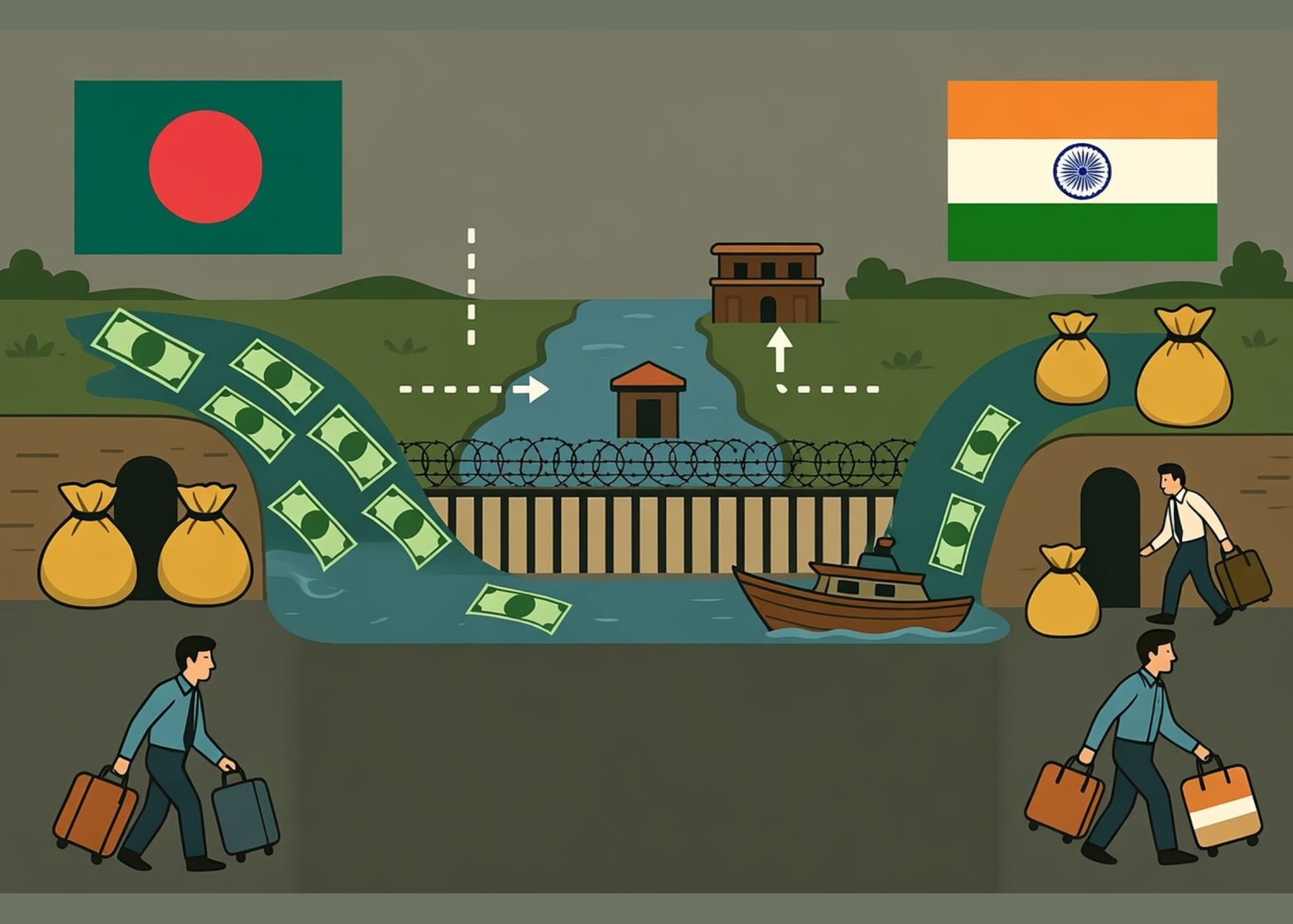 বাংলাদেশ থেকে ভারতে শুধু বৈধ বাণিজ্য বা রেমিট্যান্সের মাধ্যমে নয়, বিভিন্ন অনিয়ন্ত্রিত পথে প্রতি বছর বিপুল পরিমাণ মুদ্রা চলে যাচ্ছে। চাকরির আয় থেকে পাঠানো রেমিট্যান্স, ভ্রমণ ও চিকিৎসার খরচ, এমনকি বিলাসপণ্য, প্রসাধন সামগ্রী এবং কিছু নেশাজাতীয় পণ্যের চোরাচালানের মাধ্যমে প্রতিবছর কোটি কোটি ডলার ভারতে প্রবাহিত হচ্ছে।