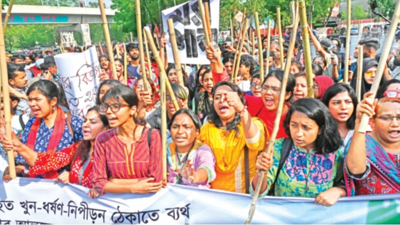 নারী নির্যাতনের বিরুদ্ধে দেশের বিভিন্ন স্থানে প্রতিবাদ হচ্ছে। ঢাবির রাজু ভাস্কর্য থেকে শুরু করে শাহবাগ, নীলক্ষেত, ভিসি চত্বর হয়ে শিক্ষার্থীরা লাঠি হাতে মিছিল করেছে। ‘ধর্ষণ ও নিপীড়নের বিরুদ্ধে বাংলাদেশ’ ব্যানারে শিক্ষার্থীরা ৯ দফা দাবি তুলেছেন। তাদের অন্যতম দাবি—ধর্ষণের বিচার দ্রুত ট্রাইব্যুনালে সম্পন্ন করতে হবে এবং ব্যর্থতার দায়ে স্বরাষ্ট্র উপদেষ্টাকে অপসারণ করতে হবে। শিক্ষার্থী আন্দোলনে একাত্মতা প্রকাশ করেছেন ঢাকা বিশ্ববিদ্যালয়ের শিক্ষক, বিভিন্ন সামাজিক সংগঠন ও সুশীল সমাজের প্রতিনিধি।