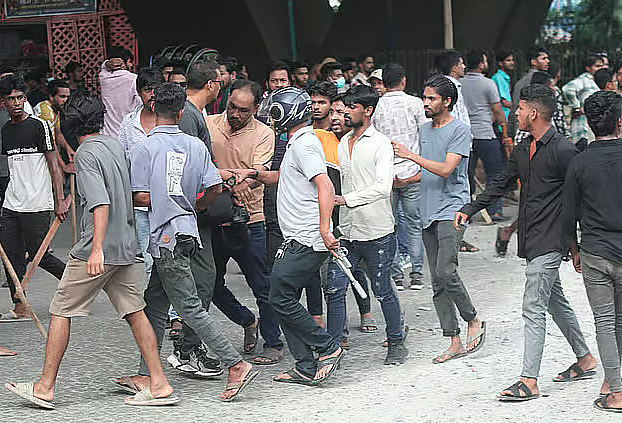 একই দিন জামাল খান ওয়ার্ডে সাবেক কাউন্সিলর শৈবাল দাশ সুমনের নেতৃত্বে বেলা ৩টা ১৫ মিনিটে আন্দোলনকারীদের ধাওয়া দিতে দেখা যায়। তাঁর পাশে থাকা এক যুবক, ফরহাদুল ইসলাম চৌধুরী ওরফে রিন্টু, শটগান হাতে ধরা পড়েন। তিনি ছাত্রলীগের কেন্দ্রীয় কার্যনির্বাহী সংসদের সাবেক উপসমাজসেবা–বিষয়ক সম্পাদক। সঙ্গে থাকা আরেকজনকে অস্ত্র কোমরে গুঁজতে দেখা যায়, তবে পরিচয় জানা যায়নি। এই সমস্ত অস্ত্রধারীর কেউই গ্রেপ্তার হননি।