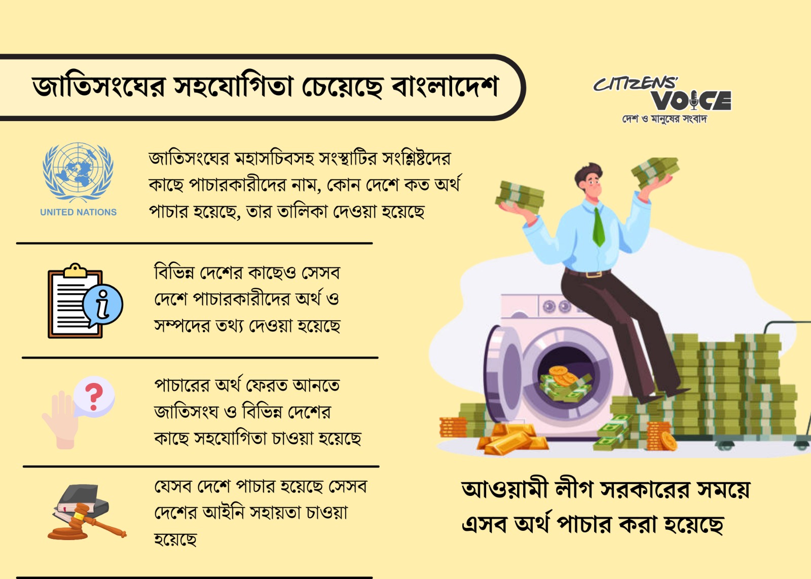 প্রধান উপদেষ্টার প্রেস সচিব শফিকুল আলম বলেন, “বাংলাদেশ থেকে শীর্ষ অর্থপাচারকারীদের চিহ্নিত করা হয়েছে। তাদের পাচার করা অর্থ ও সেই অর্থ দিয়ে কেনা সম্পদ বিক্রি করে অর্থ আদায়ের চেষ্টা চালানো হবে। আওয়ামী লীগ সরকারের সময়ে কিছু অসৎ ব্যক্তি বিভিন্ন কৌশলে অর্থ পাচার করেছেন। ফেরত আনা টাকাগুলো সাধারণ জনগণের কল্যাণে ব্যবহার করা হবে। জাতিসংঘের সহায়তা চাওয়া হয়েছে এবং যেসব দেশে টাকা গেছে সেসব দেশের প্রতিনিধিদের সঙ্গেও যোগাযোগ চলছে।”