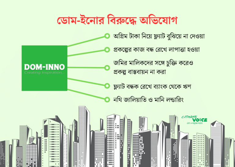 নামি আবাসন কোম্পানি ডোম-ইনো এখন নানা অভিযোগে জর্জরিত। ফ্ল্যাট বিক্রি করে বুঝিয়ে না দেওয়া, জমির মালিকদের সঙ্গে প্রতারণা, জালিয়াতি ও মানি লন্ডারিংসহ বিভিন্ন অভিযোগে কোম্পানিটির বিরুদ্ধে হয়েছে আড়াইশর বেশি মামলা। প্রতারণার শিকার বিনিয়োগকারীরা সম্প্রতি হাইকোর্টে কোম্পানির বিলুপ্তি (অবসায়ন) দাবি করে মামলা করেছেন।