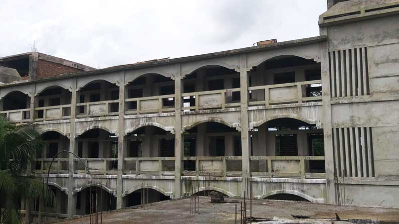 সরজমিনে দেখা গেছে, ভবনের চতুর্থ তলায় ১০-১১ জন শ্রমিক ছাউনির ফিনিশিংয়ের কাজ করছেন। এখনো প্লাস্টার, দরজা লাগানো, গ্লাস-মোজাইক বসানো এবং সিঁড়ি নির্মাণের কাজ বাকি।