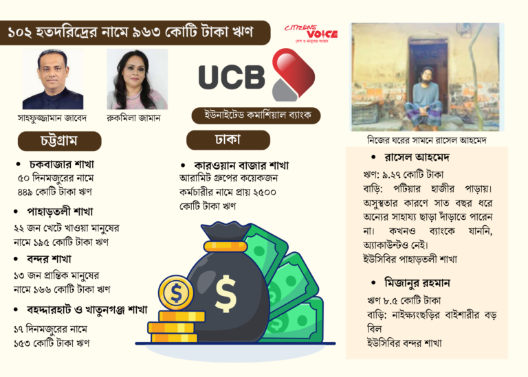 অস্বাভাবিক হলেও সত্য, ইউনাইটেড কমার্শিয়াল ব্যাংক (ইউসিবি) চট্টগ্রামের পাহাড়তলী শাখায় রাসেলের নামে ৯ কোটি ২৭ লাখ টাকার ঋণ তৈরি হয়েছে। রাসেল আহমেদকে ‘রাসেল এন্টারপ্রাইজের মালিক’ দেখিয়ে ২০২২ ও ২০২৩ সালে এই ঋণ নেওয়া হয়েছে। শয্যাশায়ী রাসেল বলেছেন, তিনি কখনো ব্যাংকে যাননি, কোনো ঋণের আবেদন করেননি, এমনকি কোনো ব্যাংক হিসাবও খুলেননি। রাসেলের মতো আরও ১০২ জন হতদরিদ্রের নামে চট্টগ্রামের পাঁচটি শাখা থেকে মোট ৯৬৩ কোটি টাকা ঋণ নেওয়া হয়েছে।