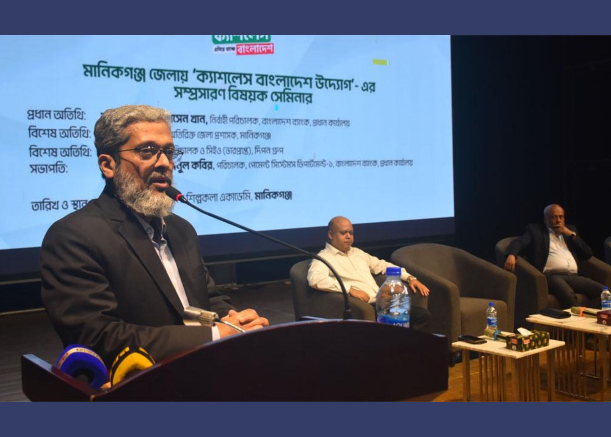 গতকাল মঙ্গলবার (৩১ মার্চ) মানিকগঞ্জ জেলা শিল্পকলা একাডেমিতে বাংলাদেশ ব্যাংকের আয়োজনে ‘লেনদেন হচ্ছে ক্যাশলেস, এগিয়ে যাচ্ছে বাংলাদেশ’ শীর্ষক সেমিনারে এসব তথ্য তুলে ধরেন বাংলাদেশ ব্যাংকের নির্বাহী পরিচালক আরিফ হোসেন খান।